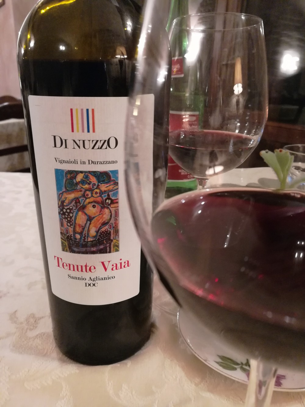 Il pasto lo abbiamo accompagnato con un ottimo Aglianico “Tenuta Vaia” vendemmia 2014 ottenuto dalla vinificazione in purezza di uve Aglianico dei propri vigneti, con un bel bouquet e una gradevolissima tannicità.
