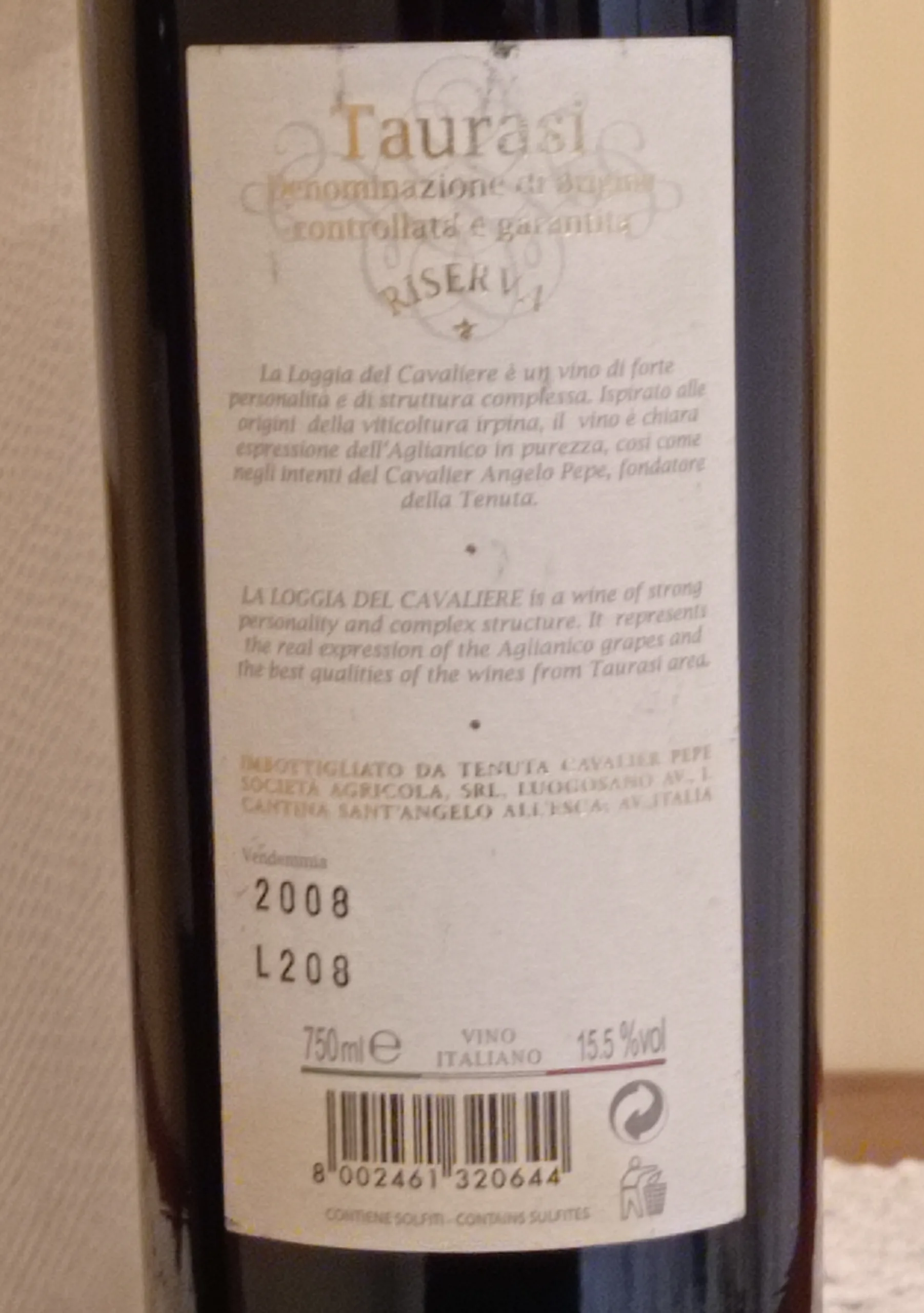 Hai detto bene caro Francesco: il Taurasi Riserva La Loggia del Cavaliere è davvero un vino eccellente e poi la 2008 si è rivelata un’ottima annata come sai. Vino che può durare un’eternità.
