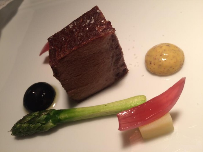 Reale di Niko Romito, lingua con asparagi e cipolla