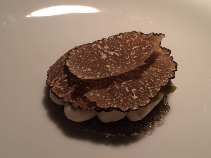 Reale di Niko Romito, gel di vitello, porcini secchi, mandorle e tartufo nero