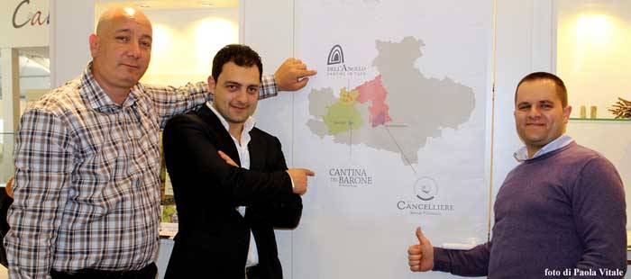 da sinistra Angelo Muto (Cantine dell’Angelo), Luigi Sarno (Cantina del Barone) e Claudio Panetta (Il Cancelliere)