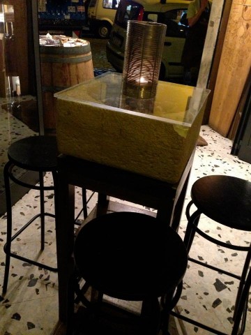 Esattamente tre anni fa ha aperto proprio qui una enoteca che è pure una piccola bottega di cose buone. Soprattutto, è anche una piccola tavola, sia calda che fredda, a seconda dei prodotti che gli arrivano in cucina e – da come si capisce subito – a seconda di come «gira ‘a capa». In carta si trovano infatti sempre almeno un piatto di carne e uno di pesce; taglieri di formaggi e salumi, crostoni (ottimo il pane) e una fantastica mozzarella di bufala di Paestum, con consegne giornaliere. Le verdure non mancano mai, grigliate o ripassate in padella. Così come il polpo, cucinato alla gallega oppure con le zucchine alla scapece.