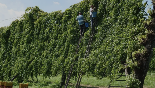 Soltanto la passione e la voglia di tutelare e salvaguardare le tradizioni e la biodiversità, possono spingere i produttori dell’Asprinio d’Aversa – che allevano uve con le albarate, da vite maritate – a resistere e a continuare le gesta di una coltivazione e di una vendemmia dalle rese bassissime che hanno dello spettacolare. L’alberata aversana che caratterizza il paesaggio dell’agro aversano, è un pezzo di storia e di unicità, tanto da essere inserito nella lista delle candidature dei siti Patrimonio Unesco. Le viti di asprinio, abbracciate ( da qui maritate ) ai secolari pioppi, raggiungono oltre i dieci metri di altezza, creando delle barriere di rami, foglie e grappoli, estendendosi da un albero all’altro a mò di festone.