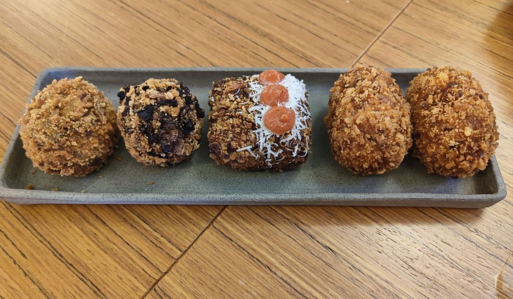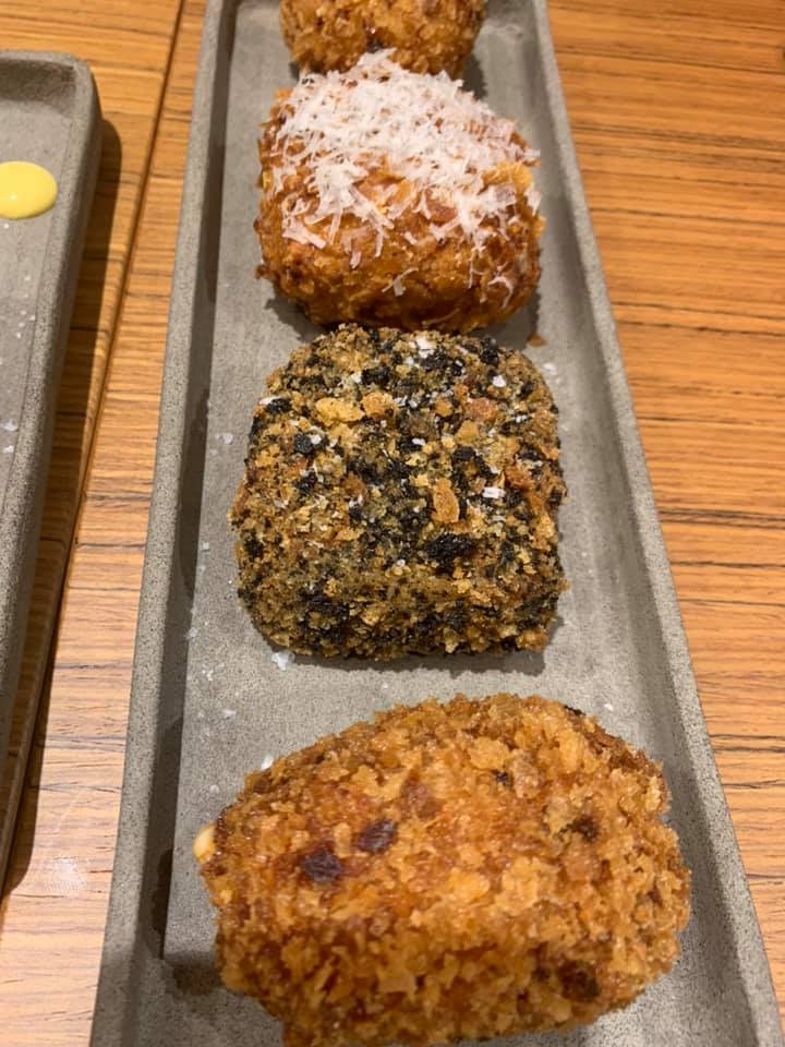 180g Pizzeria Romana: suplì aò telefono, aglio e olio al sero di seppia, cacio e pepe e crocchetta