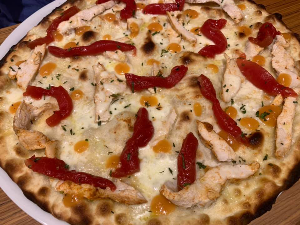 180g Pizzeria Romana pizza gourmet con pollo cbt e finto peperone, in realtà è anguria.