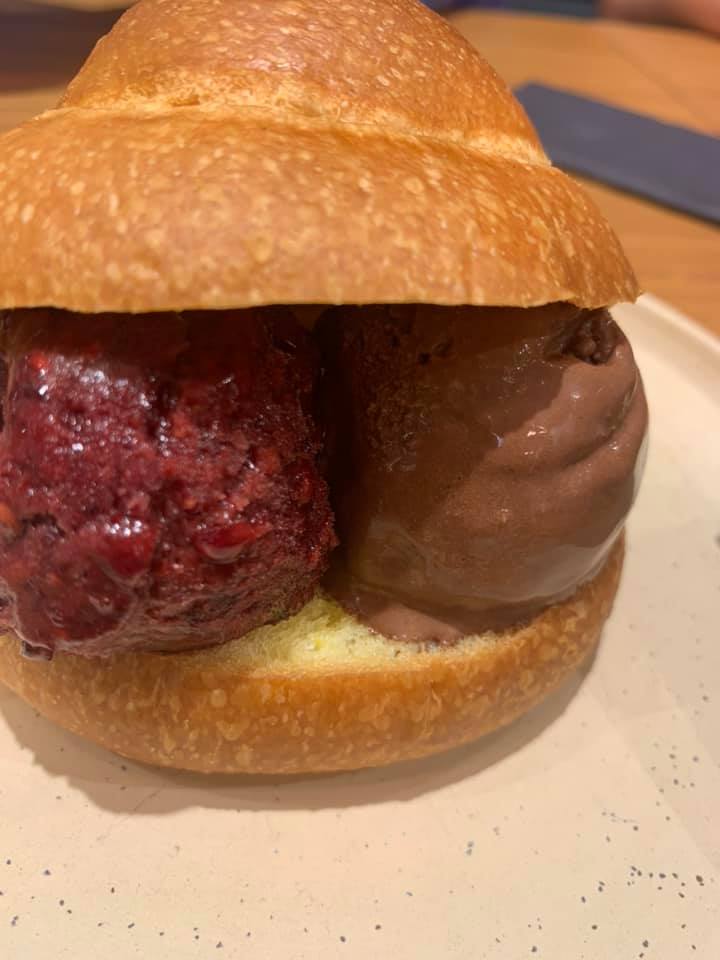 180g Pizzeria Romana: briosche con il tuttpo e il gelato di more e cioccolato
