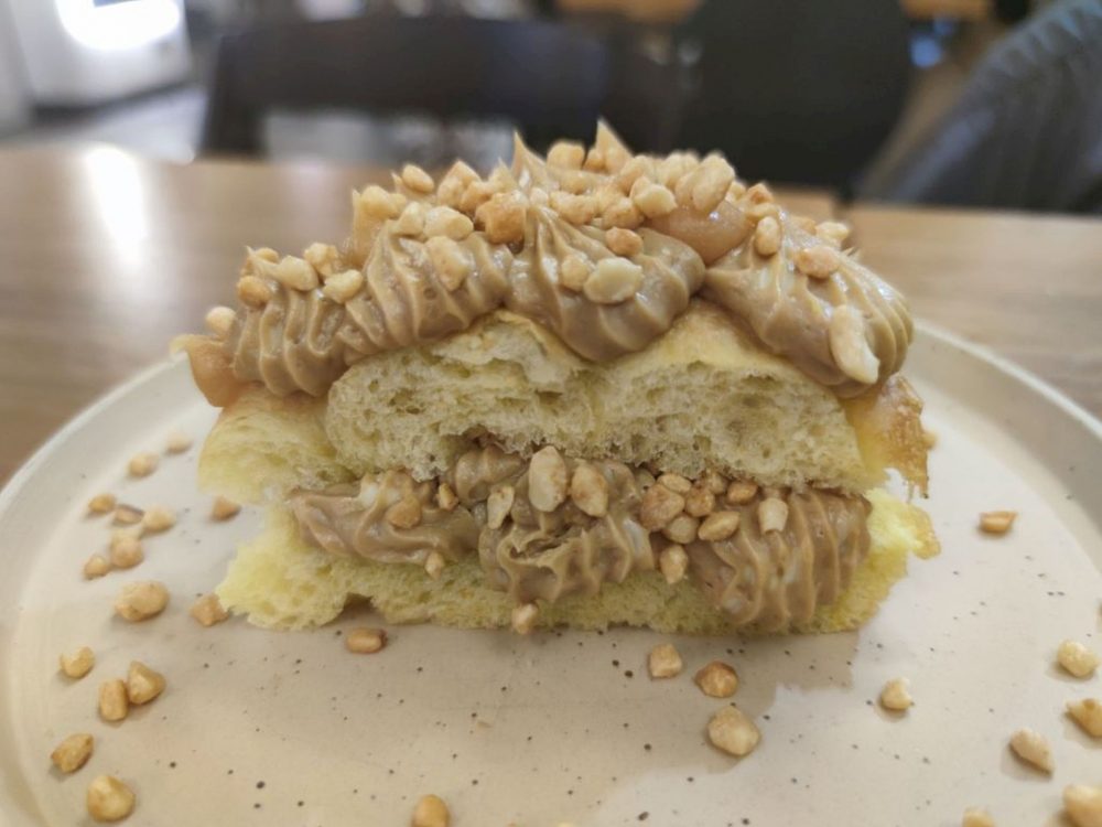 I dolci sono espressione della passione di Jacopo per i lievitati la pasticceria internazionale: oggi in carta spicca il Fluffy in versione Paris Brest (4,5€), la sua brioche con mousseline alla nocciola, nocciole, arachidi pralinate e caramello salato. Tra le proposte sono state inserite anche due tartellette con due diverse frolle, una tradizionale con ricotta e marmellata di visciole e l’altra al cacao con un disco brownie.