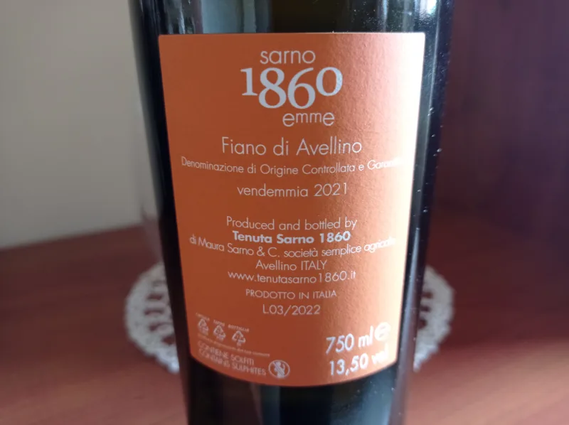 1860 emme Fiano di Avellino DOCG 2021 Tenuta Sarno