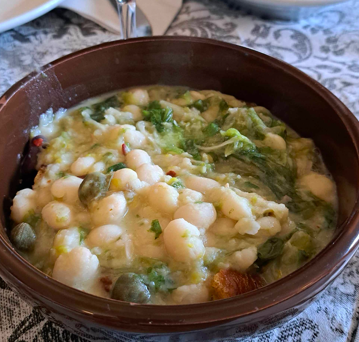 Insieme alla “Lasagna” nel locale di Angelo Martino, ovviamente, non mancano gli altri piatti che ben si associano al periodo. Tra questi, “Genovese” a parte, le “polpette al ragù”, i “fagioli di Controne con scarole”, le “papaccelle” di Brusciano, le “olive caiazzane” e per gli amanti del mare, uno squisito “polpo all’insalata”, il tutto abbinato alle migliori etichette di vino prevalentemente campane.