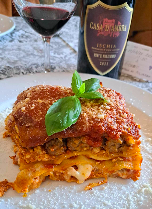 Tant’è che, conquistato un posto d’onore nelle proposte del “53” viene servita, dopo un’attenta cottura in forno, immersa in un eccezionale ragù di carne, con le sue tipiche sfoglie di pasta ben divise da una succulenta farcitura di ricotta, provola, mozzarella, uova, polpettine fritte di carne e parmigiano.
