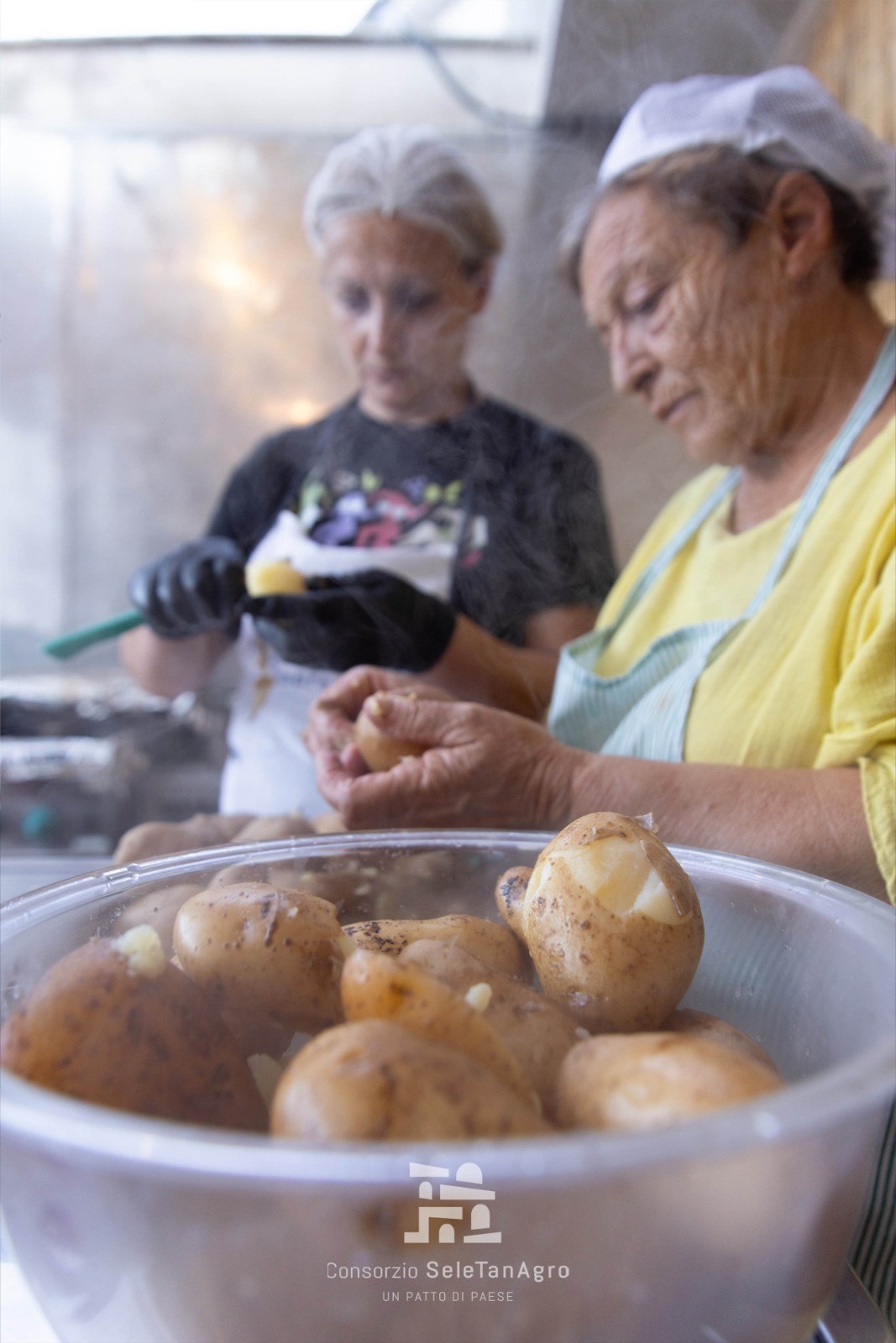 E poi ci sono le patate. Premessa: in provincia di Salerno quando si parla di patate di montagna, per definizione le più adatte ad alcune preparazioni che richiedono un tubero più asciutto, si pensa a San Gregorio Magno, tanto che gli abitanti in gergo dialettale vengono definiti “patanari”, e non è una diminutio.