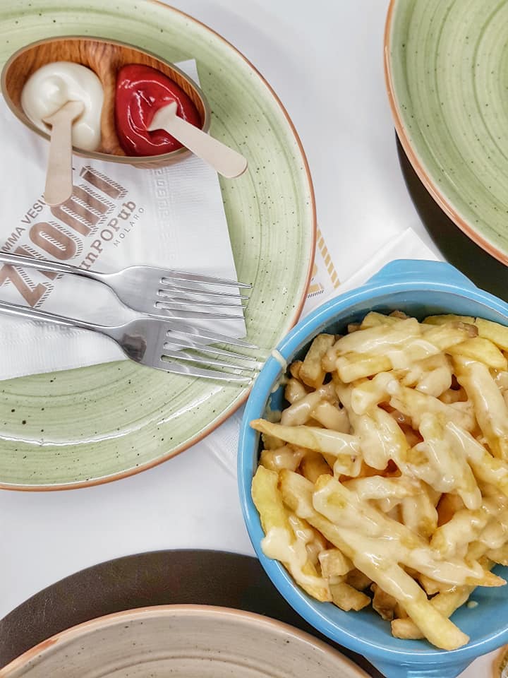 Fra gli sfizi, figurano le patatine sia chips che stick in ogni variante; da assaggiare quelle ai quattro formaggi servite direttamente con salse homemade. Buona la frittura, asciutta e croccante al punto giusto.