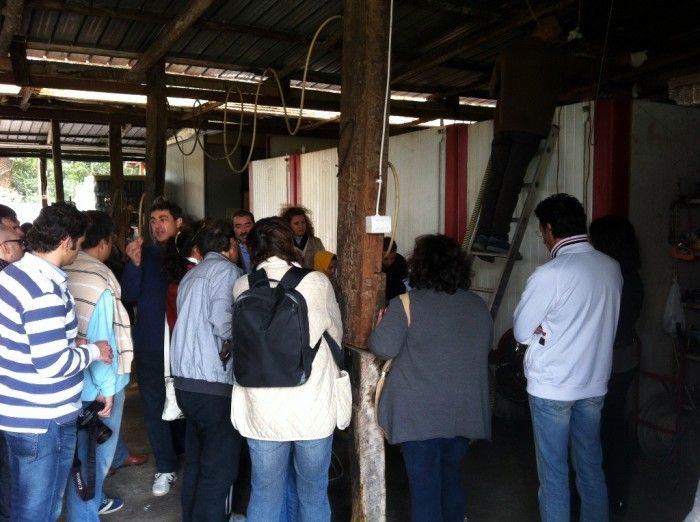 Appena il tempo di illustrare agli ospiti le varie fasi di vinificazione e di far partecipare ai bambini al rimontaggio del vino già in sosta sulle bucce da alcuni giorni, che arriva il temporale. Troviamo riparo nella bottaia, che per l’occasione è stata attrezzata per accoglierci e ristorarci con una bella degustazione di prodotti del territorio abbinati ai vini e all’olio dell’azienda. A turno Giovanni Rapuano e Maurizio De Simone ci hanno trasportato nel mondo di Torre del Pagus, che deve il suo nome all’antica denominazione del comune di Paupisi, ossia Pagus Pisus.