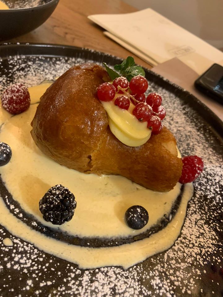 Quando trovo in carta l’uovo, non riesco a resistere. E’ una chiave di lettura immediata. La regola non si smentisce. In un luogo cosi, non mi aspetto un piatto fighetto e infatti arriva a tavola un piatto opulento e ruspante. La mousse di provolone, sabbiosa al palato e l’amaro del broccolo saltato sono un abbinamento strepitoso. L’ottimo cestino di pane ai cereali si esaurisce in pochi secondi.