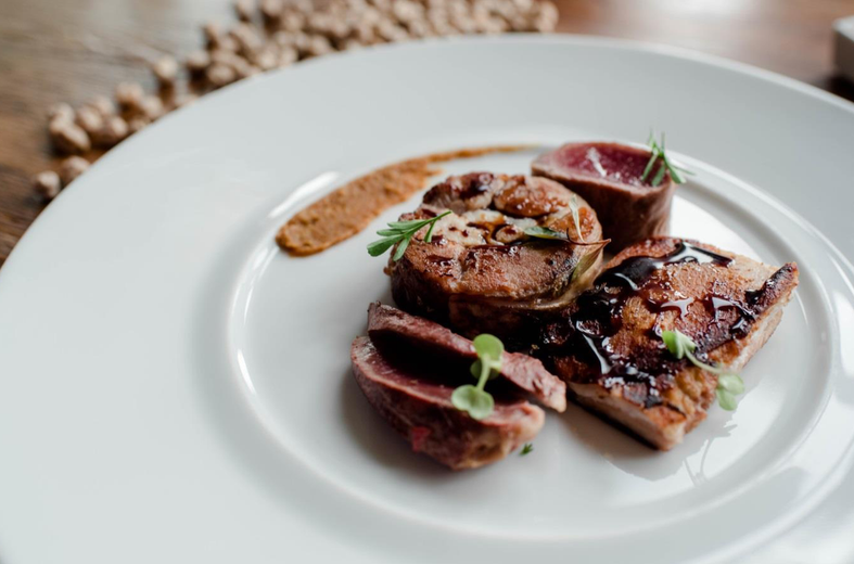 Aggiungere sul piatto il miso di ceci che servirà da accompagnamento all’agnello.