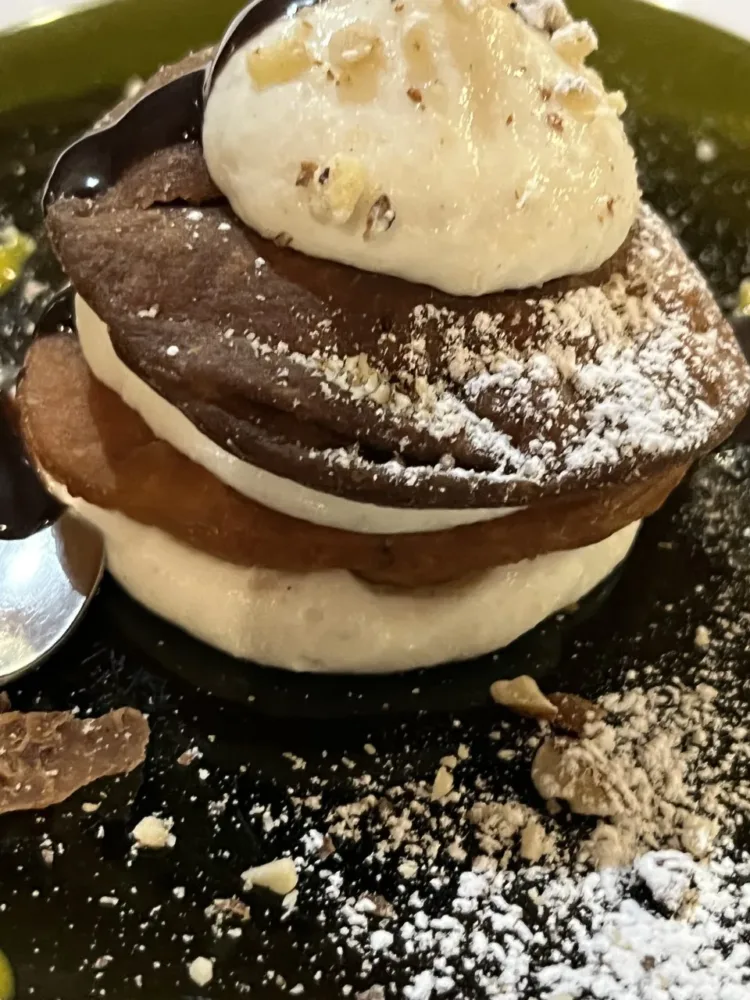 Si chiude in dolcezza col cannolo scomposto, dove la sfoglia sono fragranti chiacchiere visto il periodo carnevalesco, piacevole sorpresa per cui plaudo allo chef. Un goccio di liquore alla cannella o al limone e il pensiero guardando le stelle corre a 24 anni fa, quando sotto il cielo stellato di questo lembo estremo di Sicilia, diedi il mio primo bacio. Di baci e di stelle ne sono passati tanti da allora, ma del primo resta un dolce ricordo, gli amori giovanili sono puri e illusori, forse proprio per questo non si dimenticano mai.