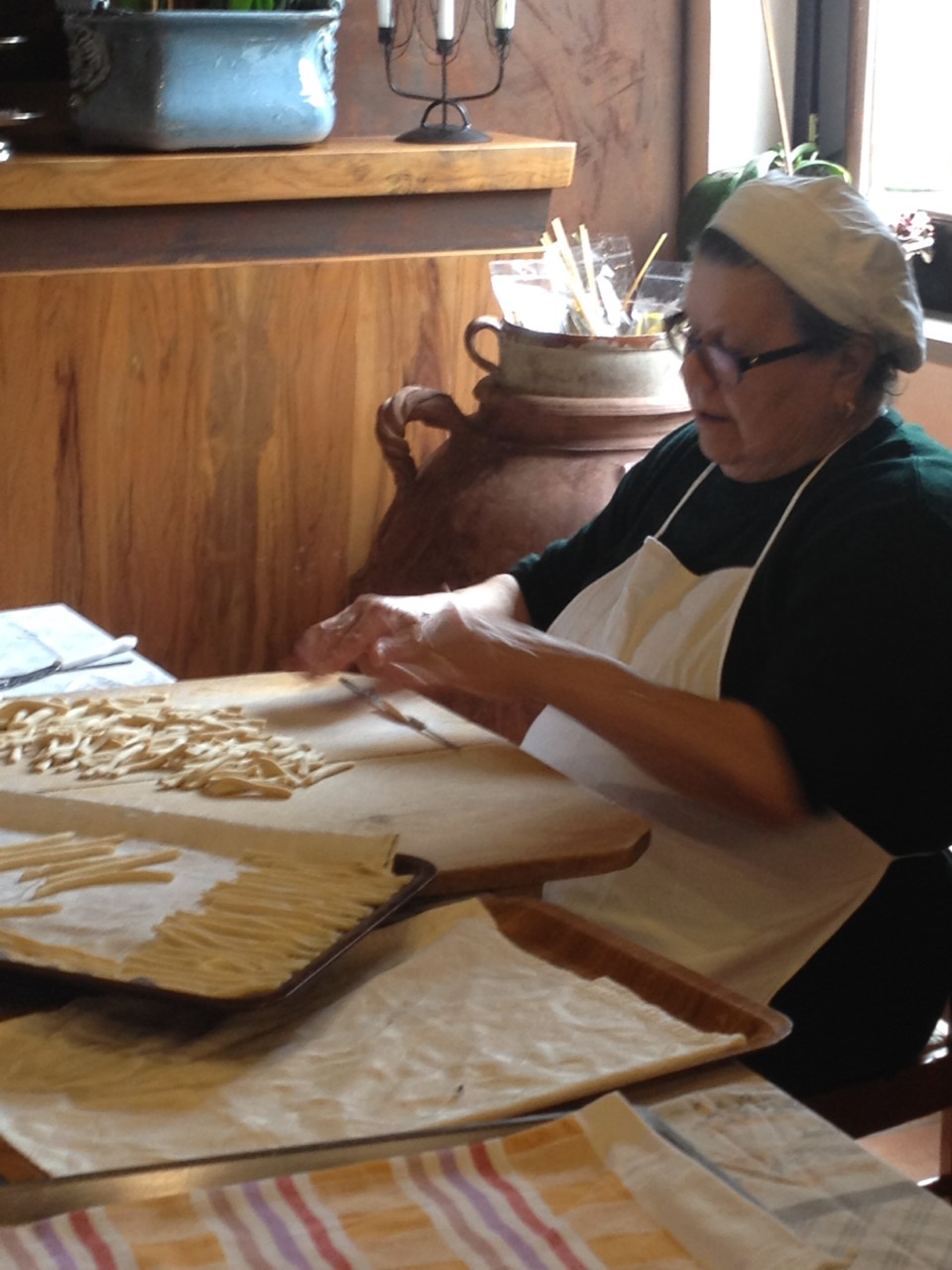 Qui trovate tante verdure, condite con un ottimo olio di olive salella, biologico, sempre secondo stagione. La pasta (cavatelli, fusilli, ravioli), viene tirata a mano dalle nonne, mentre i nipoti guardano, giocando col cellulare, semmai un po’ sbuffando se gli chiedi di prendere qualcosa in cucina.