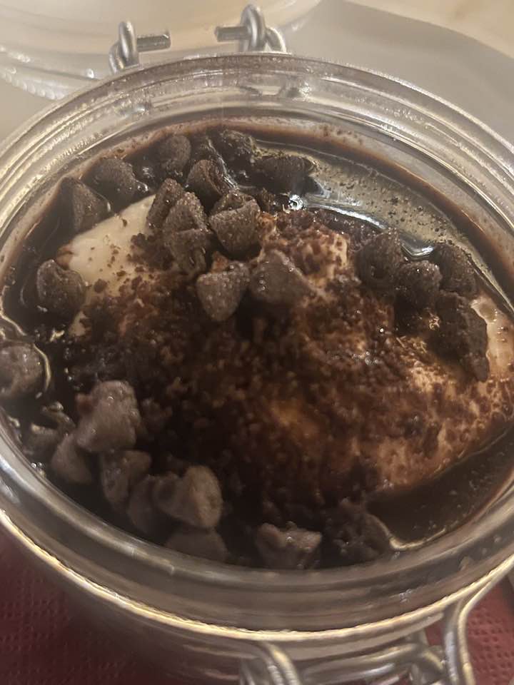 Chiudiamo con due dolcini, cheeescake al cioccolato fondente e crema di ricotta, cannella e cantucci. Piacevoli, senza acuti, migliore la seconda della prima (5 euro il costo singolo).