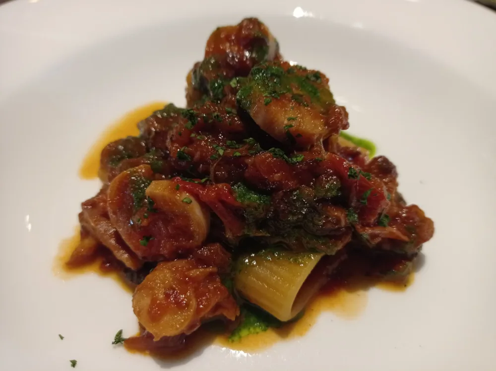 Mezze maniche con ragù di polpo. Un altro piatto da applausi ed ottimamente eseguito: coreografico, centrato,