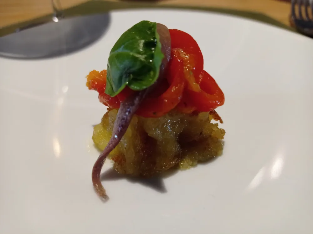 Trattoria di mare Alici Patate, peperoni arrosto e alici salate