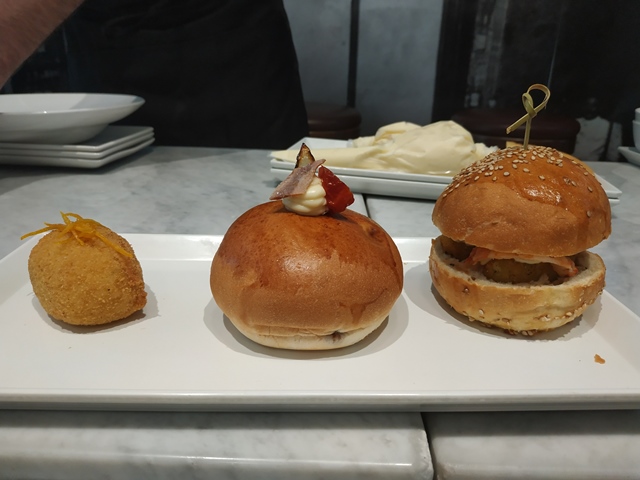 La focaccia alla panella (9€) è aromatizzata ai semi di finocchio, con crocchè di patate alla menta e gambero al limone; l’Arancina(6,50€), invece, è ripiena di provolone e scampo profumato all’arancia, mentre lo Sfincione Gourmet (5€) è composto da un involucro di pasta brioche soffice con salsa di pomodoro, acciuga, cipolla e caciocavallo ragusano.