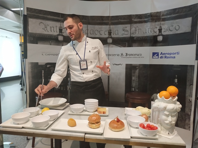 “Aeroporti di Roma vuole divulgare la cultura enogastronomica e la cucina popolare siciliana: quasi tutte le materie prime arrivano da produttori siciliani e, molto spesso, direttamente da Palermo”, ha spiegato Brunetti.