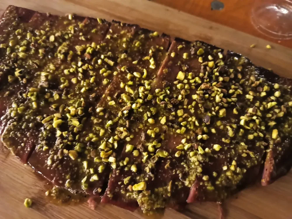 All’Antico Vialone – La Mortadella alla brace ricoperta di granella di Pistacchio