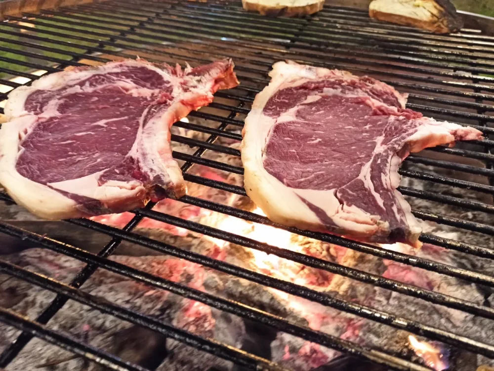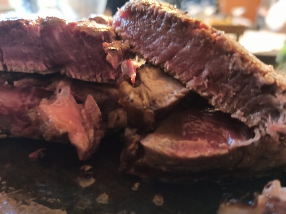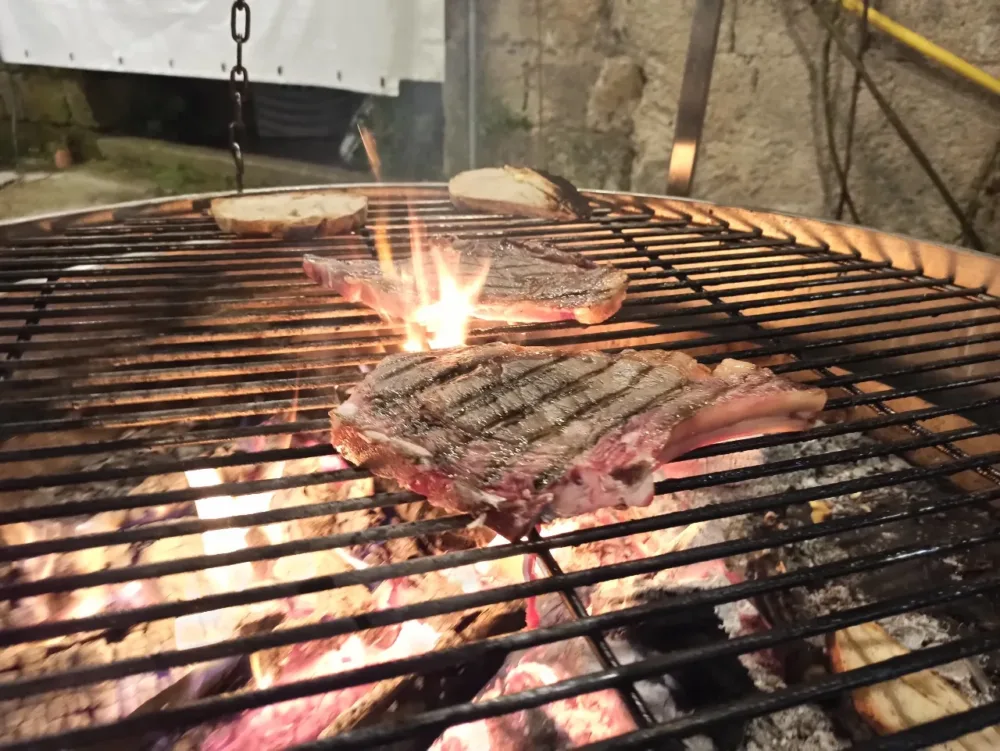 Non possiamo poi certo andar via senza aver prima assaggiato le carni del Sannio frollate per almeno una quarantina di giorni e soprattutto cotte su quella brace che ha cominciato ad ammaliarci dalla sua accensione! Ordiniamo dunque due bistecche da circa 650 grammi l’una per assaporare questa succulenta e tenerissima costata di scottona Sannita circondata da spicchi di Patate del Taburno cotte con tutta la buccia.