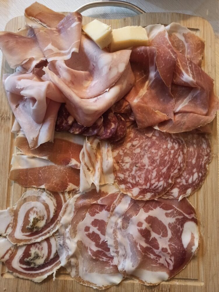 Dal momento che Salvatore è un affinatore in grotta di Formaggi e di Salumi di produzione propria e di produzioni igp e dop, non riusciamo a rinunciare alla grande fellata del norcino che ci permette di addentrarci nel mondo del padrone di casa.
