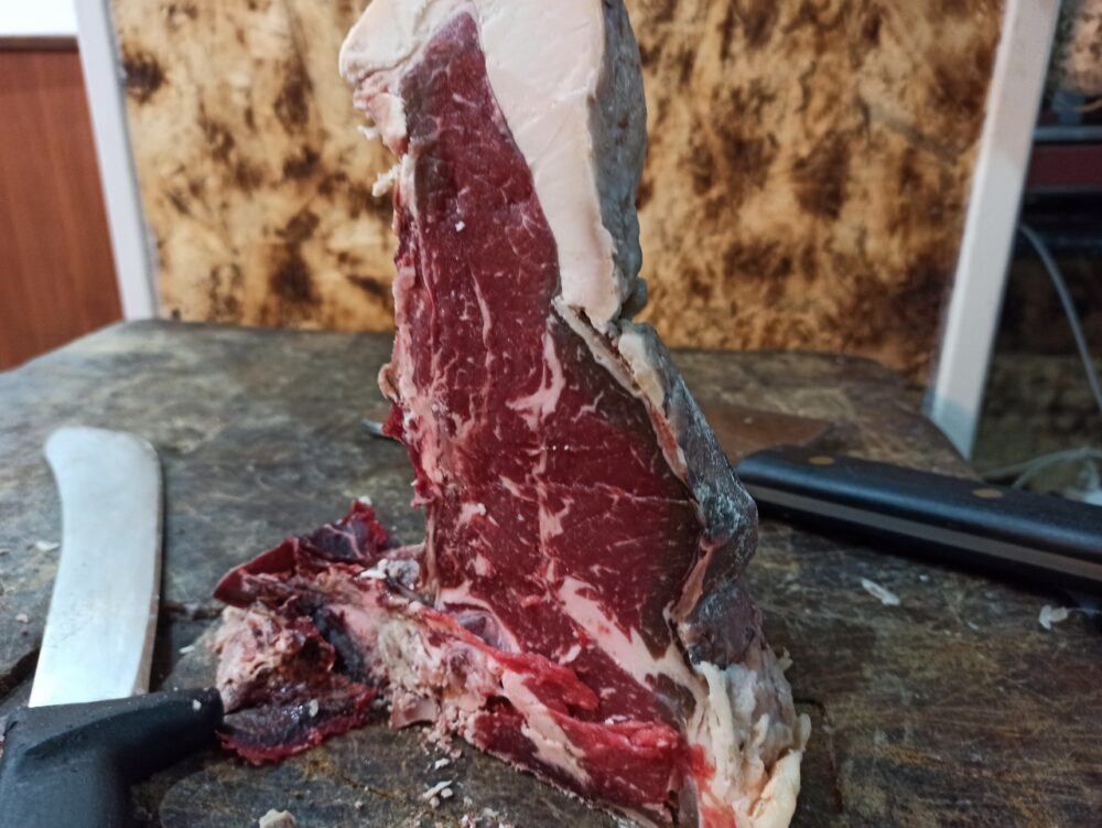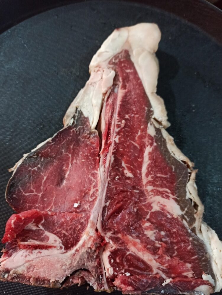 Anche se vicini al punto di sazietà non rinunciamo assolutamente ad assaggiare un mezzo chiletto di tenerissima e succulenta T-bone di scottona di Limousine allevata dalle parti di Amorosi e Gioia Sannitica con una quarantina di giorni di frollatura (45 euro al Kg). Da provare la prossima volta la Vacca adulta di 10/11 anni con grasso giallo.