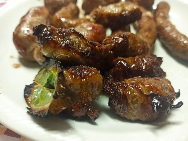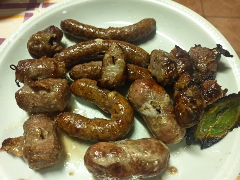 Mentre continuiamo a sorseggiare il buon vino della casa arriva l’Arrosto Misto con le specialità Pugliesi di produzione propria: Bombette al formaggio e Bombette al macinato di bovino; Salsiccia a punta di coltello, Zampina classica e al pomodoro; e infine gli irrinunciabili Gnumridd, i fegatini avvolti nel budello di agnello che sprigionano un profumo e un sapore straordinari con le frattaglie che non diventano mai invadenti.