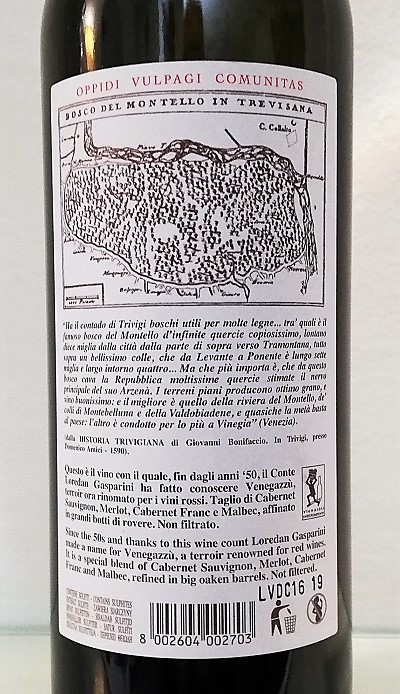Nella parte dedicata ai vini veneti, nello specifico a quelli della provincia di Treviso, oltre ai Prosecco vengono menzionati solamente due altri vini, ecco quanto si trova scritto in merito ad uno di loro “In questa zona è stato prodotto per decenni uno dei più fini vini d’Italia, il Venegazzù, del Conte Piero Loredan, fatto con Cabernet franc, Cabernet sauvignon, Merlot, Malbec e Petit verdot che viene invecchiato per tre anni in fusti”.