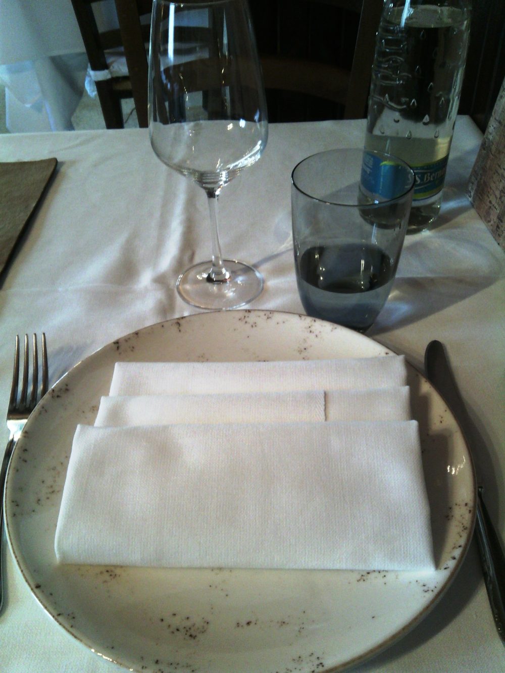 Entriamo in orario napoletano (le 14) ma il senso di colpa ci passa quando vediamo ancora tutti i tavoli pieni, eccetto il nostro che ci hanno conservato perchè avevamo avvertito del ritardo, strano e insolito, della Frecciarossa. Solo 80 minuti.