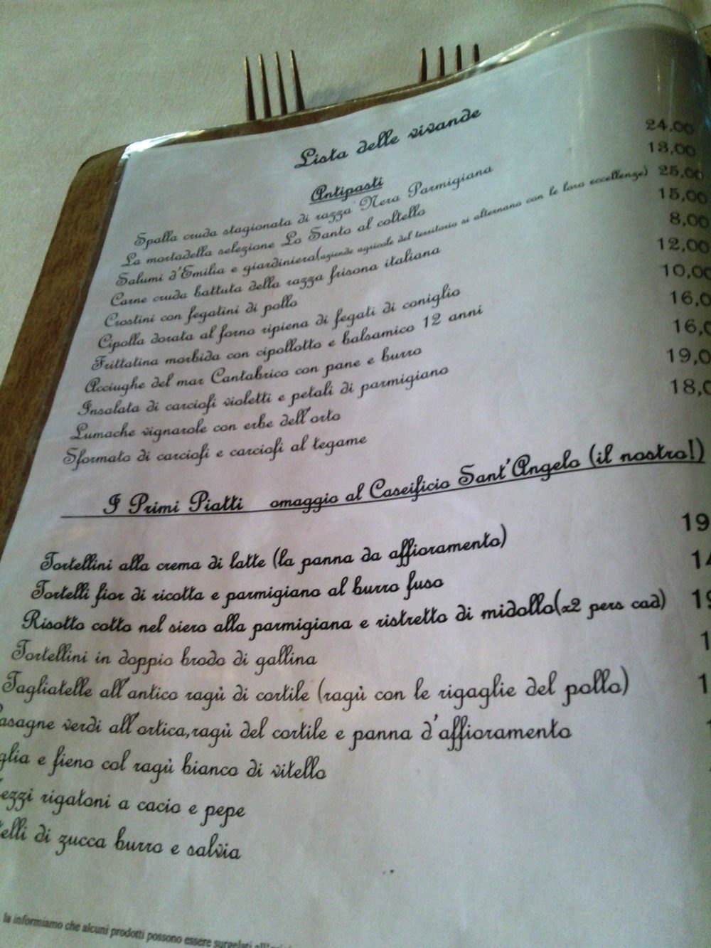 Il menù celebra il quinto quarto e la tradizione contadina, aggiustata quel tanto che basta per alleggerire i piatti e rendereli più digeribili. L’omaggio va anche al caseificio di proprietà, nel quale si produce il parmigiano, la ricotta e la famosa panna da affioramento.
