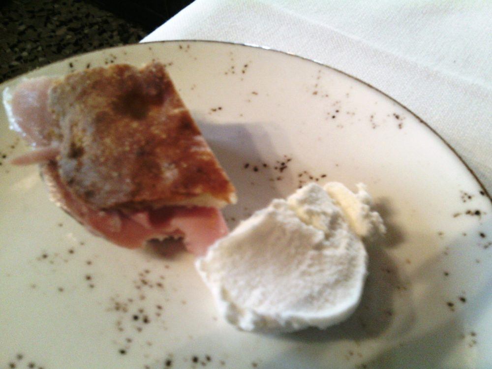 Antica osteria del Mirasole, Il benvenuto – Ricotta vaccina con crescente e mortadella