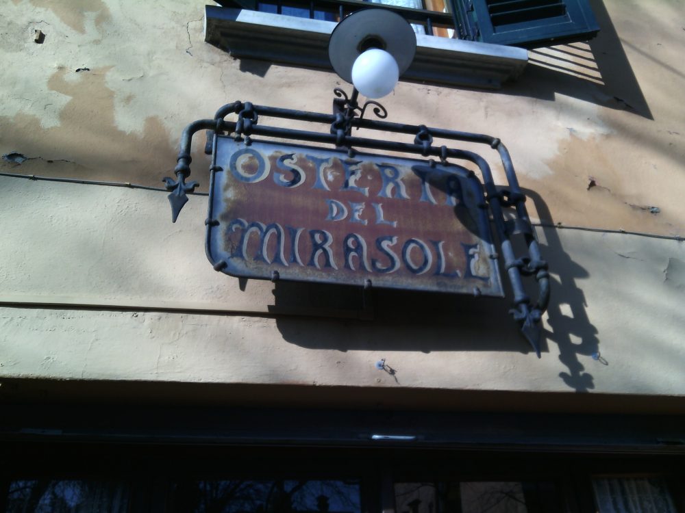 Tra i vicoli che costeggiano la piazza principale, sta immutato un piccolo abitato, l’Osteria del Mirasole. Il locale conserva sia fuori che dentro, coi suoi infissi bassi in legno, il profondo camino acceso, le stoviglie e gli antichi strumenti, quell’atmosfera di atavica taverna, ove tempo addietro gli avventori potevano ristorarsi, desinando, dopo logoranti ore di viaggio, e, perchè no, anche fare tappa per la notte.