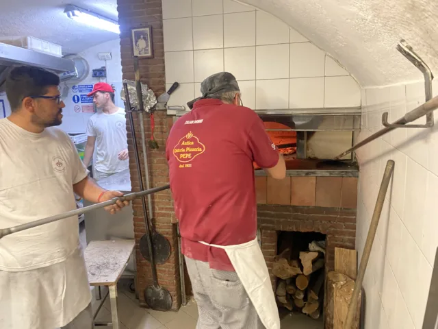 Antica Pizzeria Osteria Pepe è un luogo magico, autentico, che echeggia la pizza popolare, dove code di persone attendono di sedersi in un ambiente d’antan, colmo di ricordi indelebili e di storia, per essere accolti da Massimiliano e Nino (vero maestro pizzaiolo), nonché da Gianmarco, la nuova generazione che avanza (figlio di Nino), per vivere l’esperienza della pizza che è una promessa d’amore, un revival, una certezza e un impegno “per sempre” a non spegnere il forno acceso da papà Stefano nel 1931.