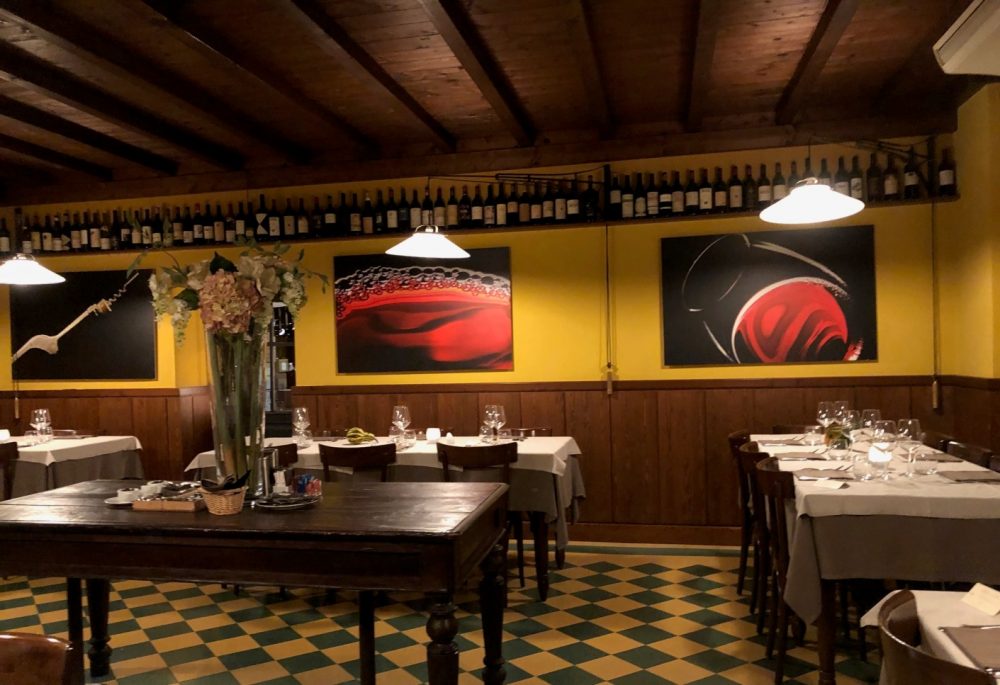 Antica Trattoria del Gallo, tavoli, vini e mise en place