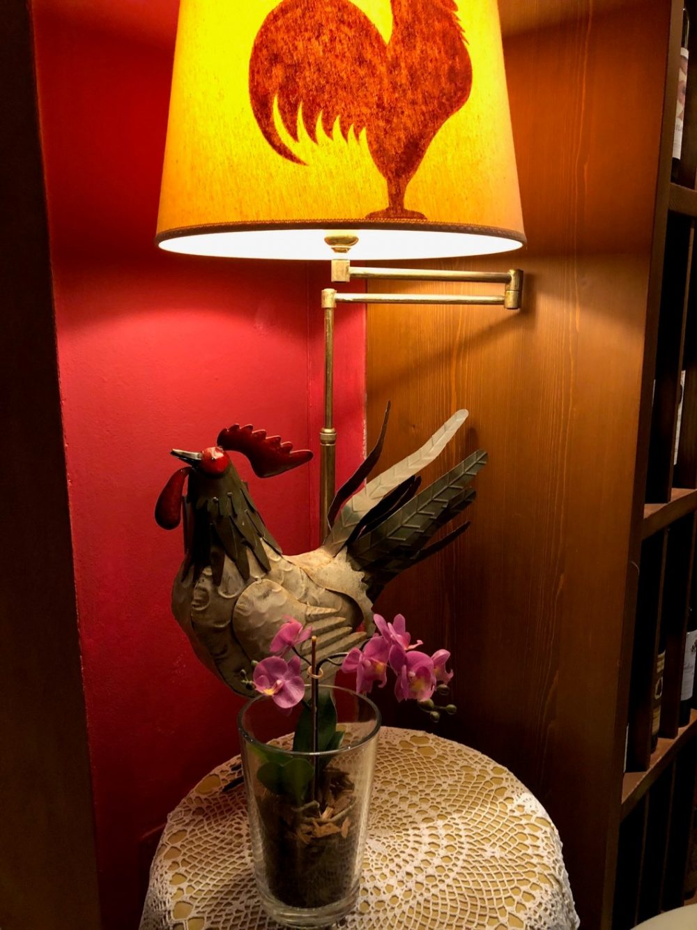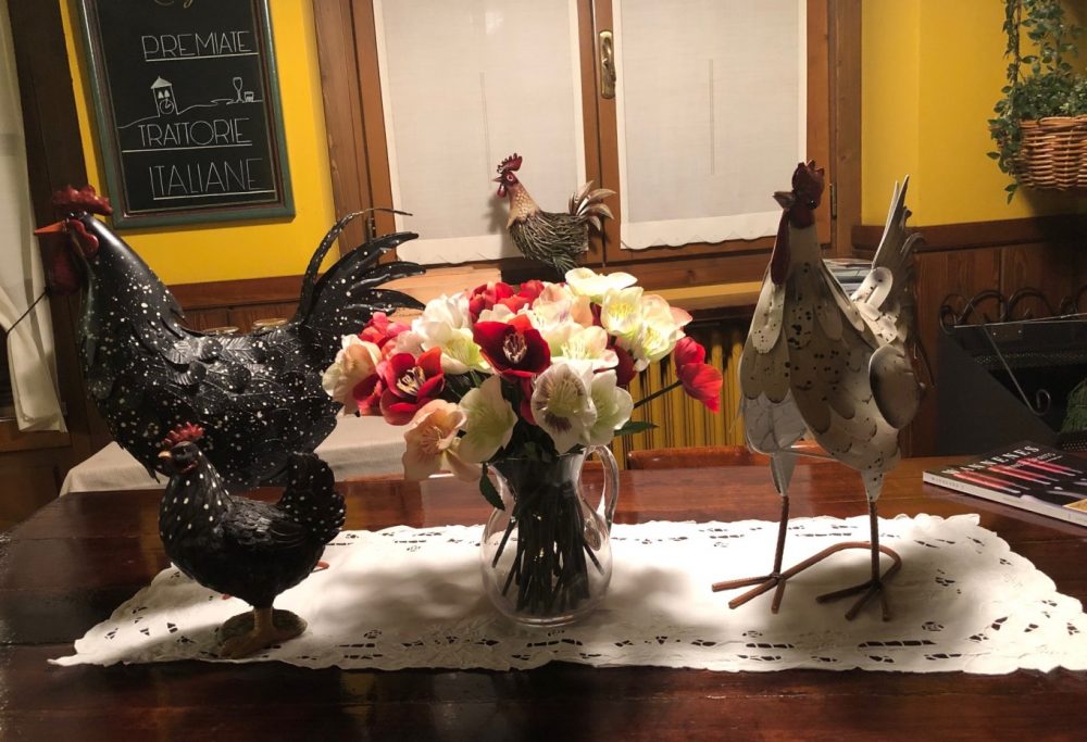 Antica Trattoria del Gallo, i galli e la lavagna delle Premiate Trattorie