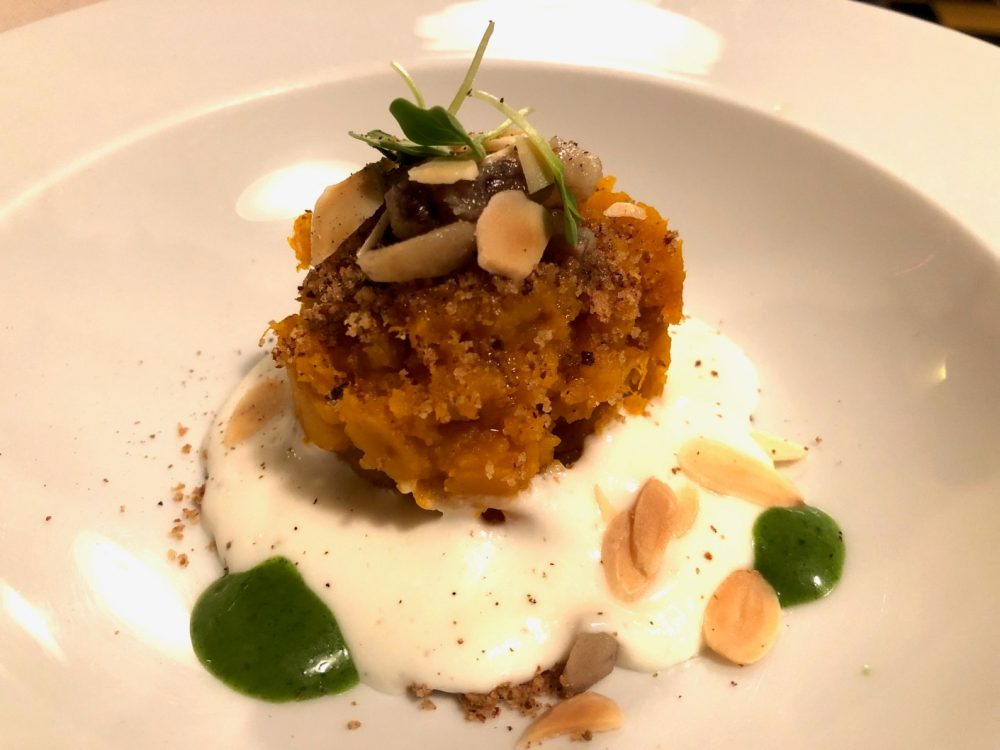 Antica Trattoria del Gallo, zucca arrostita, castagne e vellutata di stracchino