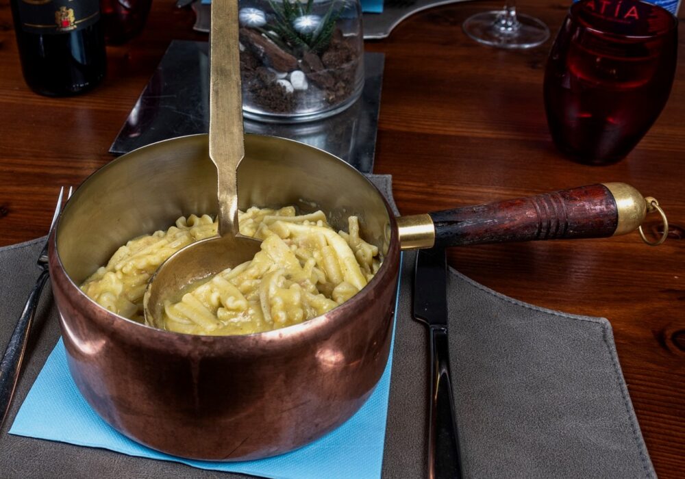 Ieri Oggi Domani – pasta e patate con scorzette di parmigiano, fuinghi porcini e affumicatura di legno di quercia