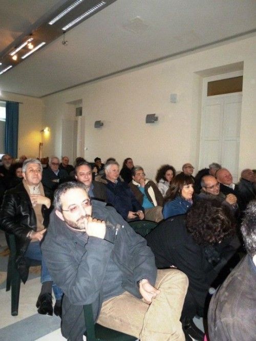 Al tavolo dei relatori: Rita Abbagnale, Carlo Petrini, Nino Pascale , Vito Trotta e l’Assessore comunale al Turismo, Giuseppe Scotto. Sala da trecento posti gremita con posti in piedi.
