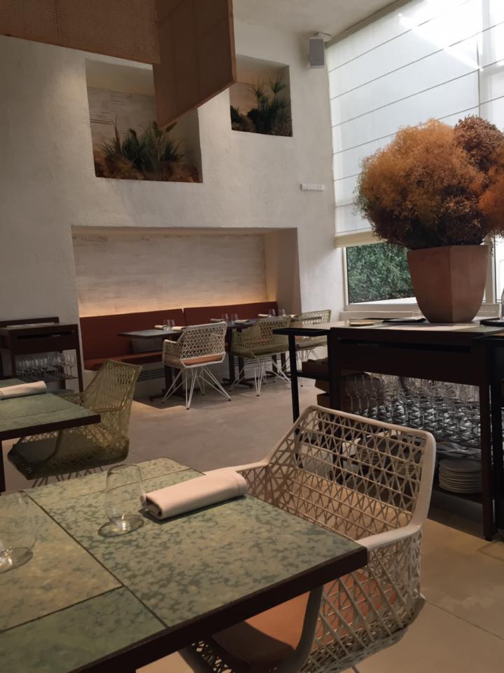 La sala, appena entrati, è una boccata di ossigeno, anzi di aria di mare tra le declinazioni del turchese e del verde, i colori di Roses, in Costa Brava, dove tutto è cominciato. Sul tavolo di servizio centrale gli arbusti che crescono sulle rocce, fuori un giardino d’inverno dove far riposare gli occhi e la mente.