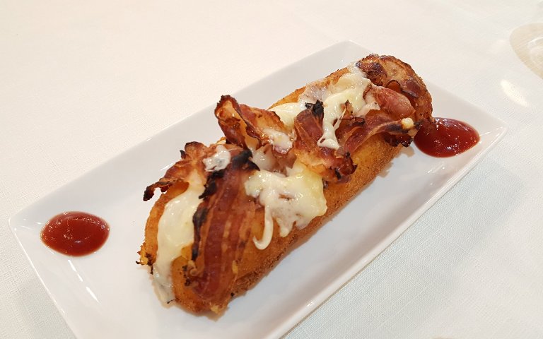 Per partire abbiamo provato il crocchettone, un crocchè di patate da 300 grammi, fritto, farcito con pancetta veneta dei Fratelli Billo, Monachello (caciocavallo a pasta filata dell’avellinese) e pepe arlecchino (mix di grani tritati di pepe bianco, nero, verde e bacche rosa) e poi ripassato velocemente in forno. Il risultato è un involucro dorato e croccante che racchiude il sapore autentico delle patate e il gusto ricco della farcitura.