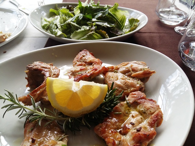 Piatti semplici ed autentici, erbe spontanee, pasta fatta in casa e carni alla griglia. Piccola selezione di vini del territorio e un corposo tintore autoprodotto dai frutti delle vigne tra le quali si mangia.