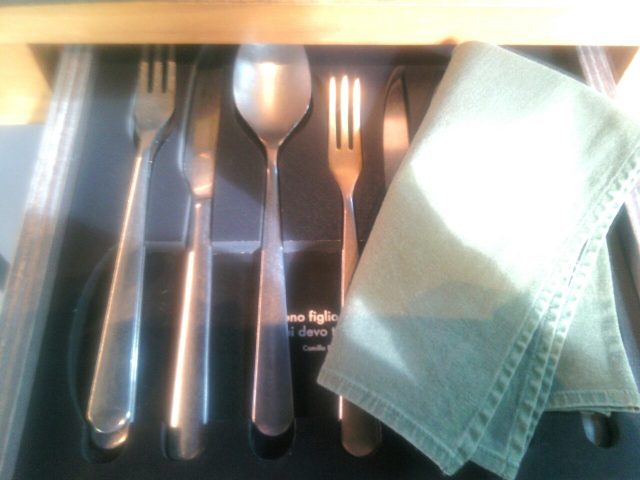 Benso- Completano il placee le posate e il tovagliolo nel cassetto