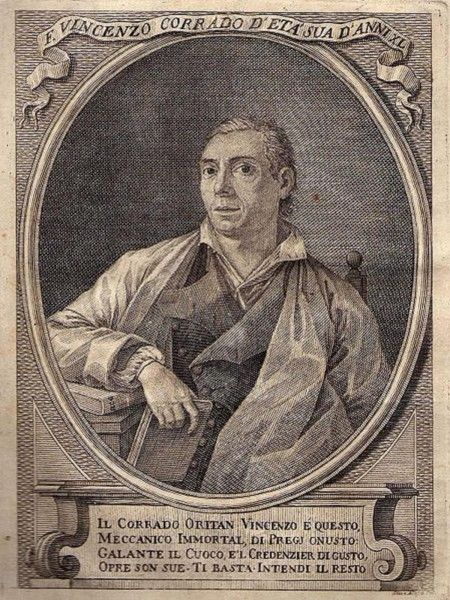 Così pure descrive creme e budini rustici di latte, addensato con amido, da mangiare come antipasti o veri e propri secondi: Verde alla Salvia, alla bieta o agli Spinaci; al Sangue di Maiale o di Agnello; all’Imperiale con i petti o i fegatini di cappone. Era una cucina di corte, insomma, pensata per i nobili palati e ispirata alla moda dei Francesi.