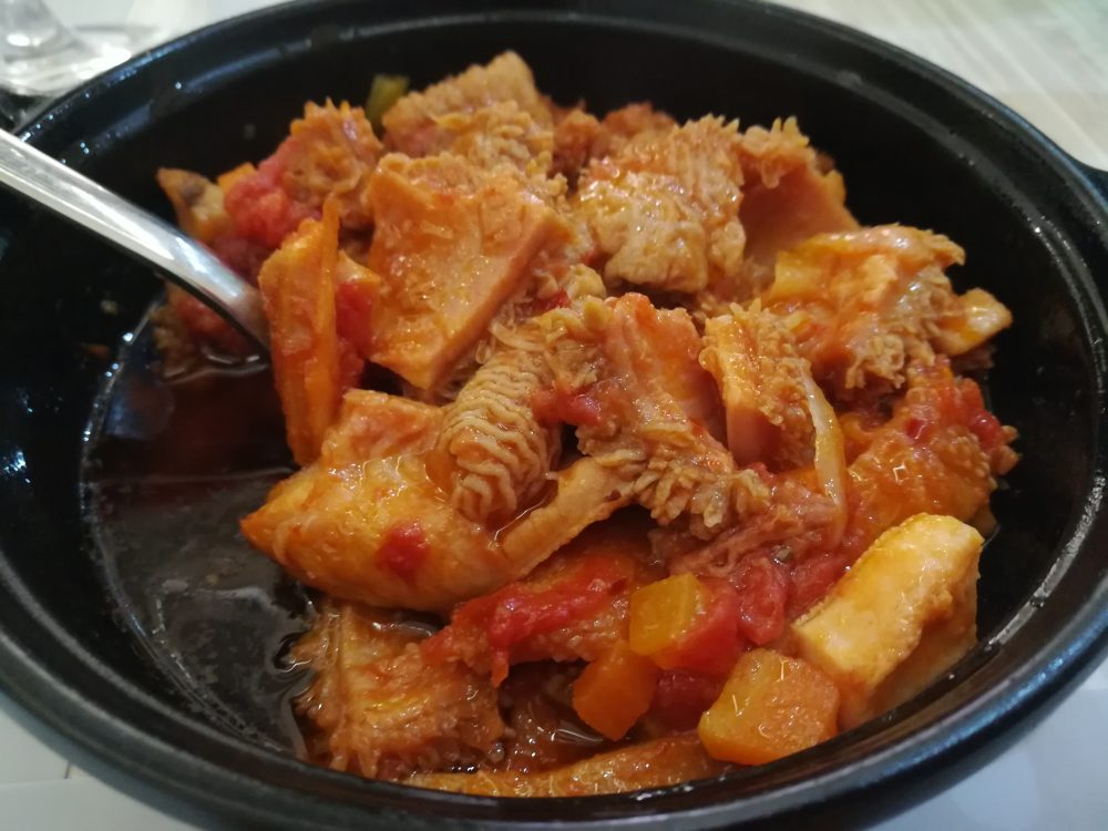 Veniamo accolti con un pignatiello contenente un’ottima Trippa con un sughetto, piccante al punto giusto, al quale difficilmente si nega la scarpetta. E mentre attendiamo i salumi, i formaggi e i fritti, cominciamo a sorseggiare la Barbera del Sannio della casa vitivinicola Anna Bosco di Castelvenere.