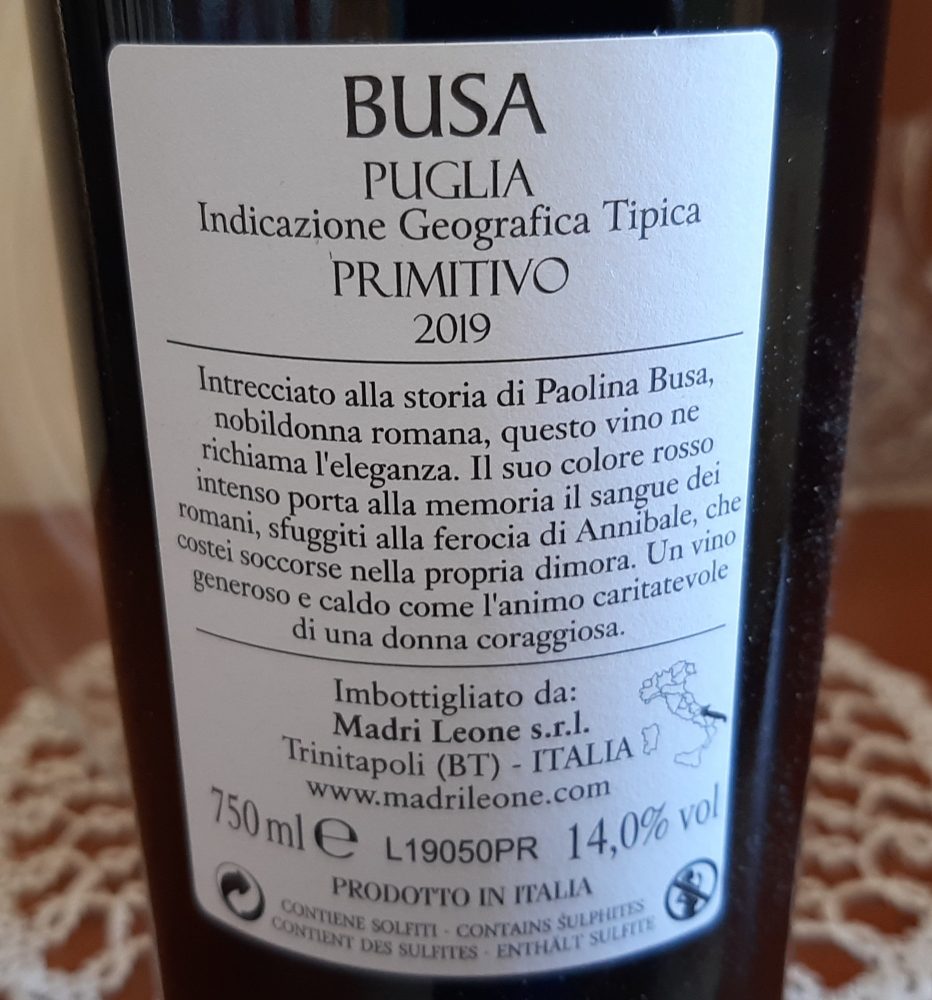Controetichetta Busa Primitivo Puglia Igt 2019 Madri Leone