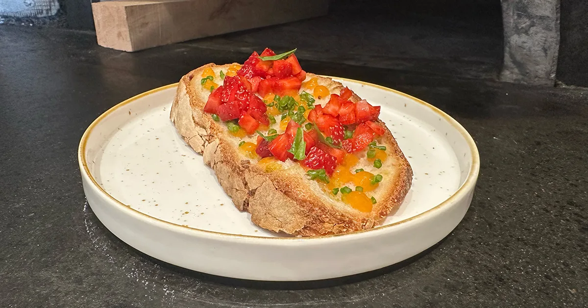L’idea di questa ricetta nasce per rendere omaggio e valorizzare una delle espressioni più napoletane del pane, ovvero il “pane cafone”, la tipologia di pane che più frequentemente si ritrova nelle case napoletane. In abbinamento, nell’ottica del principio di zero sprechi, Antonio ha deciso di abbinare frutta e verdura, due dei cibi più sprecati al mondo.